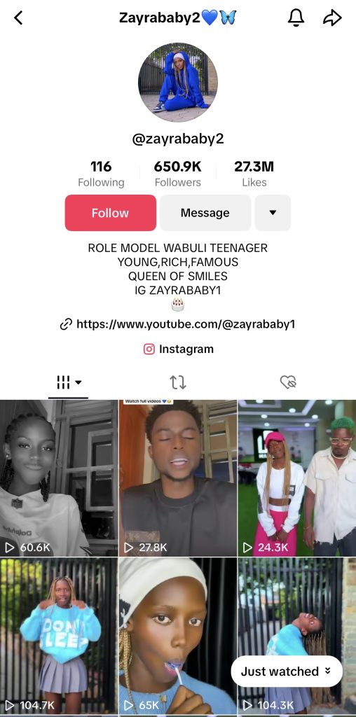 Desire Nandijja Alias as Zayrababy2 on TikTok was born on 15th December 2005 and grew up in the suburbs of Kawempe (Bwaise) where she still resides with her family mother & siblings.